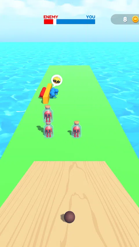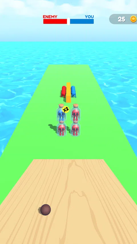 你需要精确地滚动钢球通过倾斜的表面,以撞击瓶子并释放你的战士。您的战士将加入团队以压倒敌方团队
