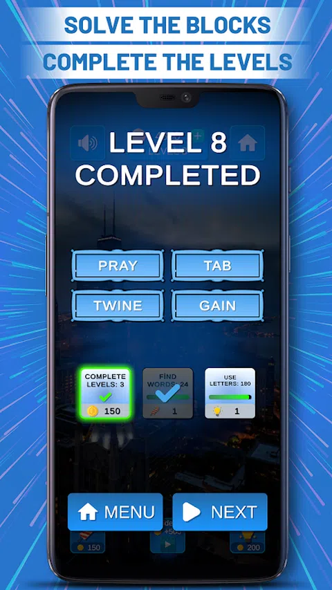 单词冒险:填字游戏是您需要接受的终极词汇测试。这款游戏为您提供了愉快的游戏玩法和挑战。继续玩游戏,在玩得开心的同时提高你的词汇量! 积木中有字母,您需要使用它们来组成单词。有很多组合,但只有一个正确答案。每个级别都有带有不同字母的不同方块。通过使用正确的组合并找到隐藏的单词来解决方块问题。要完成关卡,请解决所有方块。如果您无法找出方块,请尝试使用提示按钮。 如何玩文字冒险:填字游戏 - 点击一个字母,然后滑动到其他字母以组成一个单词 - 找到正确的单词来解决方块 - 当你似乎无法解决一个方块时,使用提示按钮 - 解决所有方块并完成关卡 提示会花费您硬币,您可以通过完成关卡或完成任务来赚取硬币。您可以通过使用字母、查找单词、完成关卡或使用提示来完成任务。完成任务后,收集奖励并随心所欲地使用硬币。 立即下载单词冒险:填字游戏,立即开始提高您的词汇量
