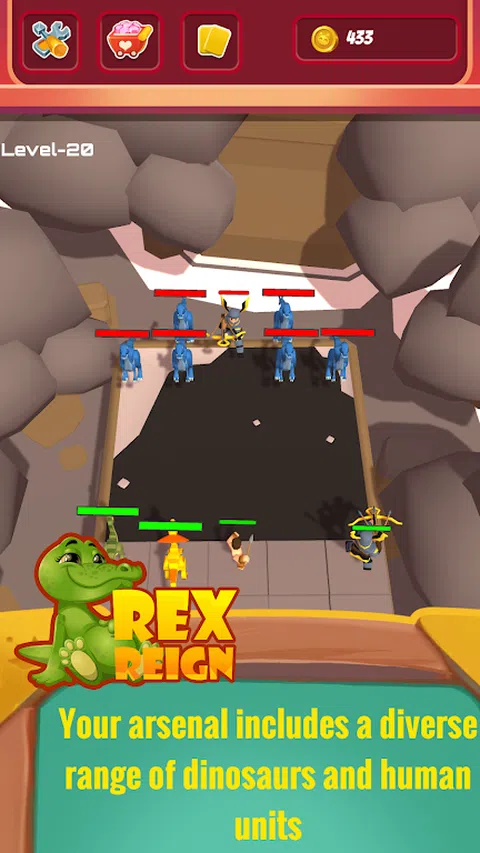 这款游戏提供了恐龙和人类战士的迷人组合,您的任务是在战术上安排和升级您的团队,以智取并击败对手。当你进入不同的关卡时,每个关卡都有清晰的说明,你会发现自己深入到一个史前生物和人类智慧碰撞的时代。 你的武器库包括各种各样的恐龙和人类单位,每种单位都有独特的能力和升级路径。当你混合和匹配你的单位,规划完美的阵容来对抗敌人的战术时,游戏的战略深度是显而易见的。战斗的成功会奖励你游戏内货币,这对于增强恐龙和人类战士的能力至关重要,使他们在即将到来的挑战中更加强大。 对于那些寻求额外提升的人,游戏提供了另一种赚取货币的方式 - 通过观看广告。此功能为选择参与的人提供了战略优势,允许更快的升级和更强大的团队。 随着你的进步,战斗变得更加激烈,需要巧妙的资源管理和战略远见。该游戏令人惊叹的 3D 图形使史前战场栩栩如生,提供身临其境的体验,战术家和恐龙爱好者都会发现迷人。无论你是精心策划三角龙的强大冲锋,还是与人类弓箭手执行战术侧翼,每一个决定都可以在这场激动人心的史前战争游戏中扭转战局
