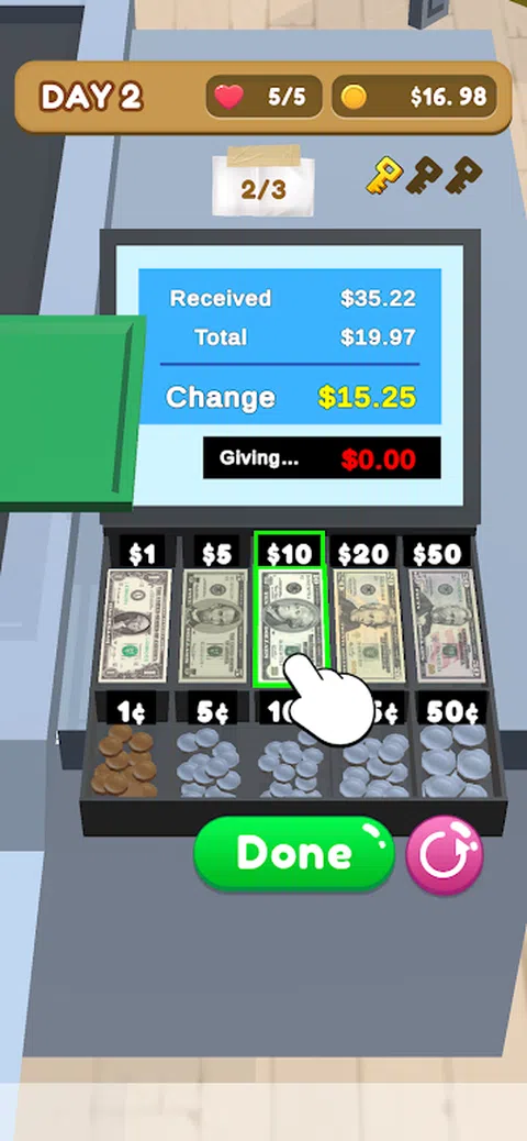 这个游戏是超市模拟器,你是一个专业的收银员。扫描顾客的物品并完成付款。
