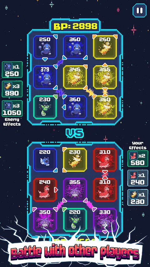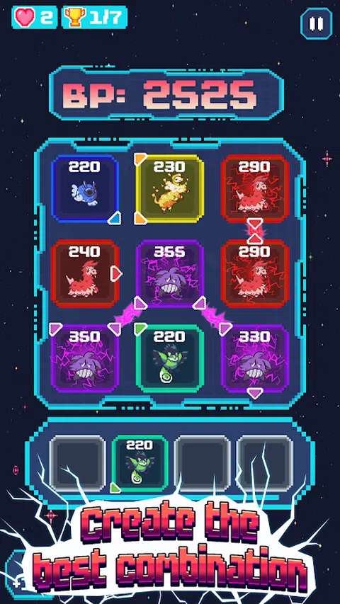 在 Tic Grid Mon 中踏上充满战略战斗和可爱生物的史诗之旅!潜入一个迷人的世界,在这里你可以收集、进化并将强大的网格怪兽释放到战场上。 收集并进化 GRIDMONS: 发现独特的 Gridmons,每个都有其特殊的能力和属性。从可爱的小鸟到神秘的龙,通过收集和进化这些迷人的生物来组建你的终极团队。增强他们的技能并释放他们的全部潜力,在战场上称霸。 创建战斗组合: 在 3x3 网格上排列 Gridmon 时,制定狡猾的策略。掌握布局艺术,创造毁灭性组合,智胜对手。触手可及的无限可能,每场战斗都带来新的挑战和胜利的机会。 参与战略战斗: 挑战来自世界各地的玩家,并在异步 PvP 战斗中测试您的战术技能。适应对手的组合,预测他们的战术,并通过精心安排完美的动作取得胜利。 释放史诗能力: 使用强大的能力释放您的 Gridmons 的全部潜力,这些能力可以瞬间扭转战局。从毁灭性的增益到改变游戏规则的削弱,战略性地放置你的网格怪并使用技能来控制战场并确保你的胜利。 你准备好踏上充满刺激、策略和可爱生物的难忘冒险了吗?立即下载 Tic Grid Mon,成为终极 Gridmon 大师