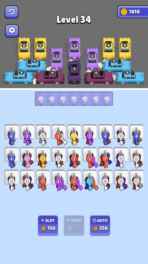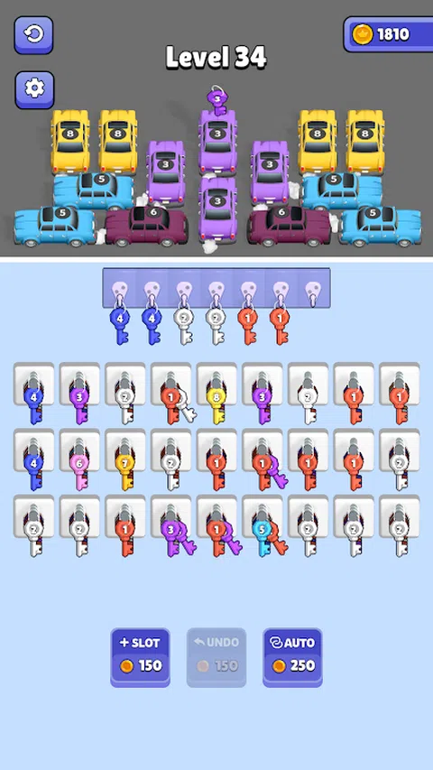 完成停车场中汽车的钥匙,将它们开出停车场! 组合 3 个相同级别的钥匙,您将获得下一个级别的汽车钥匙。 Car Key Jam 是一款令人上瘾且简单易玩的益智游戏