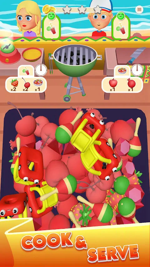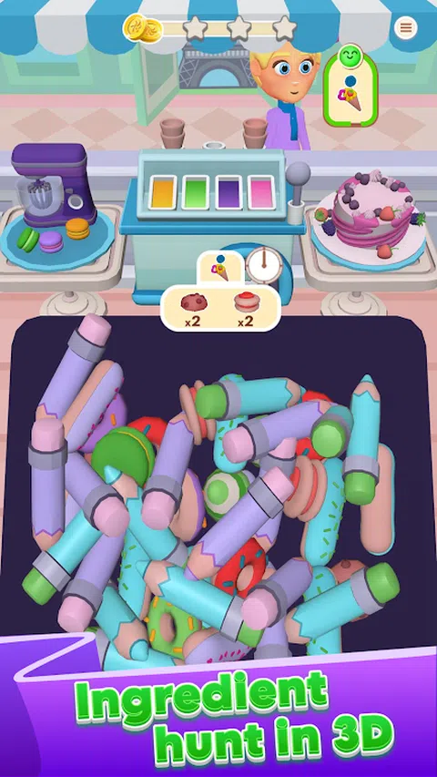 走进 FIND TO COOK 3D 充满活力的世界,在这里,烹饪挑战的冲击与 3D 解谜的刺激相结合!这款游戏邀请您踏上环游世界的旅程,在那里,炫酷的目的地与独特的菜肴相结合,探索环境。 ? 全新益智游戏: 筛选视觉效果丰富的 3D 配料,准确找到每个食谱所需的配料。你越快收集正确的组件,你的客户就会越高兴,奖励你更高的分数和更多的游戏内货币。这是对速度、记忆力和策略的考验,因为你将原料变成美味佳肴。 ? 烹饪世界之旅: 穿越一系列充满异国情调的地方,每个地方都有自己的烹饪挑战和主题装饰。冒险随着更多美味食谱和越来越复杂的谜题不断展开。 ? 咖啡馆定制: 将您的收入投资回您的咖啡馆,通过各种升级来增强其外观和效率。每项改进不仅改变了美感,还提供了游戏优势,帮助您赚取更多并更快地进步。 ?助推器和奖金: 在创意助推器的帮助下浏览关卡,这些助推器旨在帮助您应对紧张的情况。获得奖励,有可能在每个关卡结束时获得星星、游戏内货币和有用的助推器。 ? 视觉震撼的体验: 沉浸在这款画面精美、玩法有趣的游戏中。高品质的 3D 图形使厨房、食材和菜肴栩栩如生,让每次烹饪和解谜过程都充满乐趣。 ?? 准备好烹饪了吗? 下载 FIND TO COOK 3D,让您的烹饪和解谜技能大放异彩。将混乱的厨房变成蓬勃发展的咖啡馆的中心。终极美食之旅等待着您
