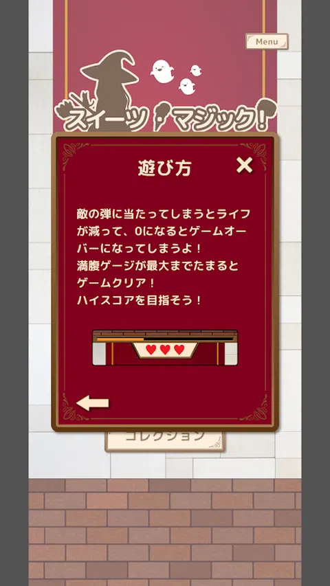 “Genkidama!基于SDGs的治疗游戏项目”为发育障碍儿童(自闭症、阿斯伯格综合症、注意力缺陷/多动障碍(ADHD)、学习障碍和抽动障碍)开发治疗和教育游戏应用程序。它提供。 这是一款专为残疾儿童设计的简单游戏应用程序。 ◆“Sweets Magic!~Pakutto Zenbu Itadakimasu!~”的规则超级简单◆ 主角是一位使用魔法的少女。在游戏中,你可以用魔法击败敌人,将他们的子弹变成糖果。 玩家可以通过左右移动按钮来控制女孩。 通过按下中央的炸弹按钮,屏幕上的所有敌人子弹都会变成糖果,这是一个恢复物品。 与炸弹一起出现的糖果会自动获得,恢复女孩的生命,并增加饱足度。 另外,如果一次获得的糖果超过一定数量,则可以根据获得的糖果数量使用不同的反击魔法来击败敌人。 玩游戏时,根据击败敌人获得的糖果数量,您可以获得奖励积分。 当填充度计填充到最大时,阶段将被清除。 如果女孩被敌人的子弹击中,她的生命就会减少,当生命值减至0时,游戏就会结束。 您可以选择游戏的两个难度级别:简单和困难。 选择适合您的难度级别,力争通关游戏并获得高分