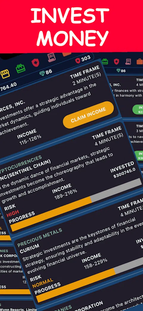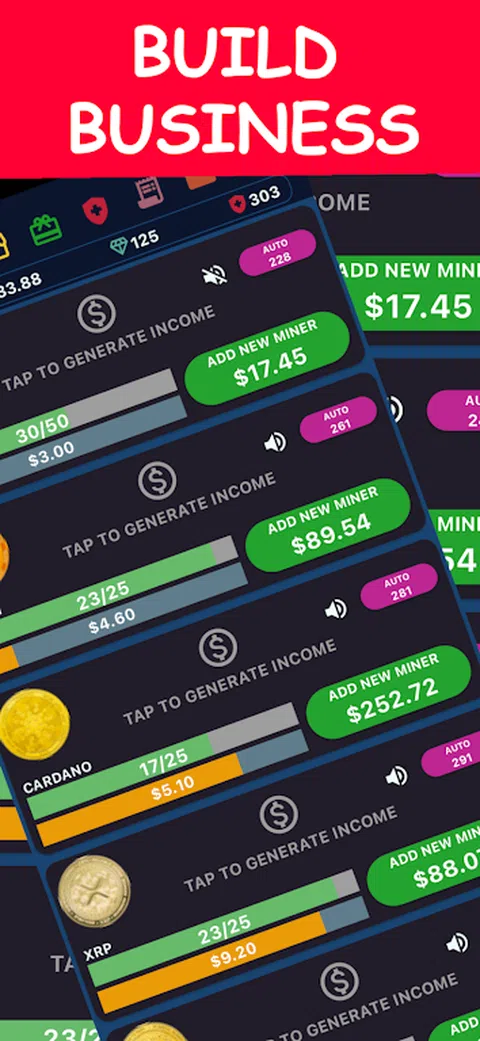 欢迎来到加密货币资本:投资者战争! 加入全球数百万玩家的行列!开发你的加密货币农场并通过开采加密货币来赚钱、投资、攻击你的竞争对手、控制税收、建立你的商业帝国,并在这场激动人心的冒险中赚取你的资本! 点击或自动点击即可赚钱! 购买加密农场并向其中添加矿工。农场中的矿工越多,您在每个货币生成周期中赚到的钱就越多。您在模拟加密货币业务中种植的加密货币越多,您可以投资于股票、金属、初创公司和其他著名公司的资金就越多。 高风险或低风险投资以节省和增加您的资本! 有钱就必须赚更多的钱!因此,你赚到的每一块加密货币或每一美元,都必须投资于股票、初创公司或其他机会。进行投资并开始赚取更多收入。但要小心—投资风险越高,您能赚到的钱就越多;风险越低,收益和奖金越稳定。 攻击并战胜其他投资者和商人! 攻击朋友和竞争对手,赚取足够的钱来建立你的商业帝国。防御那些攻击你的人,接收他们的金钱和钻石! 如果你有足够的金钱和钻石,你就可以攻击世界各地的其他人。如果你玩得聪明,很好地隐藏你的团队,同时找到你竞争对手的团队,你就能获胜。 控制您的收入和结果 - 小心税收! 你变得越有名的资本家,你要缴纳的税就越多。如果您不按时纳税,您可能会被逮捕或罚款。所以,不要忘记进入税收页面。当您看到税务发票时,请立即付款,并确保您的余额中始终有钱。 与你身边的朋友一起战斗,成为下一个加密货币资本家和商业投资者。 加入全球数百万用户的行列! 《加密资本:投资者战争》在所有支持应用内购买的设备上都是免费的。 在 Telegram 上关注 Crypto Capital: Investors Wars 即可获得独家优惠和奖金