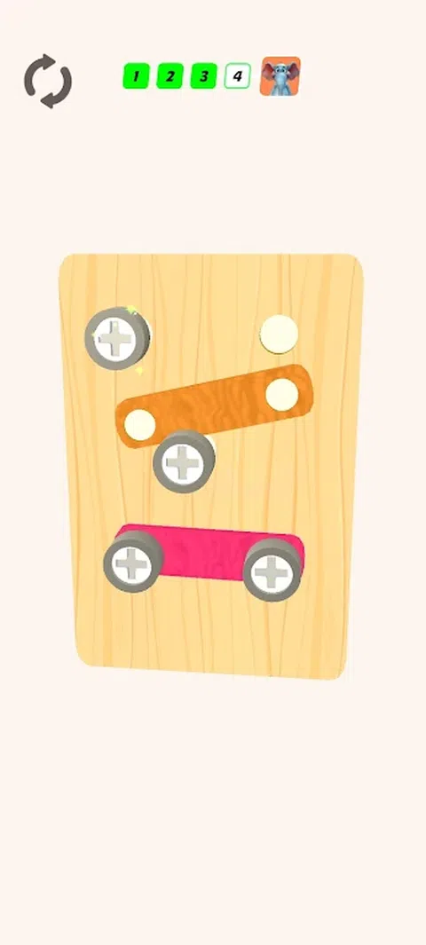 这是一款休闲游戏。 松开板上的所有螺母和螺母上的螺栓,使顶部的木头脱落。 快来挑战您可以通过多少级别