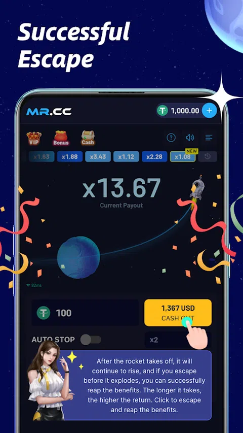 体验惊心动魄的火箭逃生游戏,在升空后爆炸前成功逃离火箭并赚取大量金币。游戏很刺激