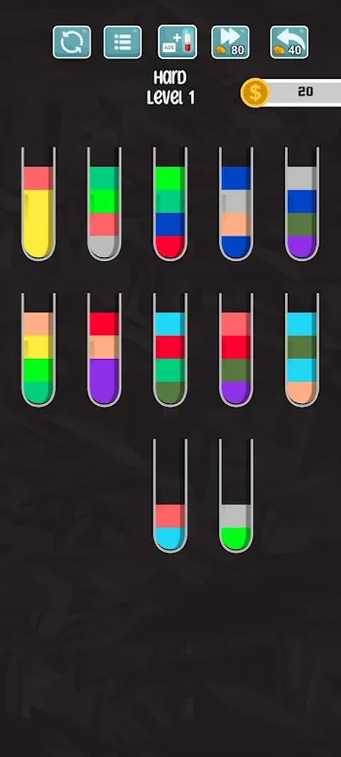 Water Sort Puzzle 是一款手机游戏,为游戏玩家提供具有挑战性和放松的体验。超过 4,050 个不同的关卡可供玩,你永远不会感到无聊!游戏允许您从三个难度级别中进行选择 - 简单、普通和困难。但这还不是全部 - 您还可以使用关卡编辑器添加更多关卡,为您提供无限的可能性。有了完整的文档,您将拥有充分享受游戏所需的所有信息。 主要特点: - 4,050 个不同级别的游戏,确保游戏时间 - 选择您喜欢的难度级别 - 简单、普通或困难 - 当您需要回溯时,撤消移动按钮(花费硬币) - 如果您觉得难度太大,可以使用硬币跳过关卡 - 应用内购买选项,用于购买金币、移除广告、解锁所有电子管和背景 - 商店系统,可让您为特定级别定制瓶子和背景 - 15 种不同的背景和 8 种不同的管(瓶)可供选择 - 随着关卡的推进,难度会越来越大,让游戏保持新鲜和刺激 Water Sort Puzzle 旨在锻炼您的大脑,同时提供有趣而愉快的游戏体验。无论您是寻找消磨时间的休闲游戏玩家,还是铁杆拼图爱好者,这款游戏都非常适合您。所以,现在就下载 Water Sort Puzzle 并测试您的拼图解决技巧! 请记住,您的任务是对玻璃杯中的有色水进行分类,直到所有颜色都在同一个玻璃杯中。在这个具有挑战性而又令人放松的游戏中,您将有机会证明自己的技能,并向我们展示自己的能力。准备好进行一场与众不同的脑筋急转弯冒险