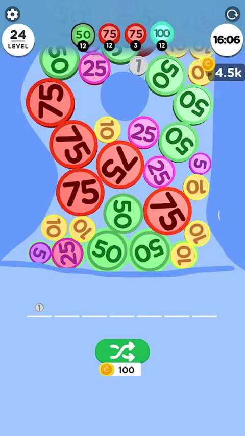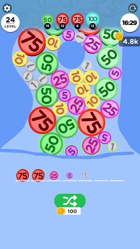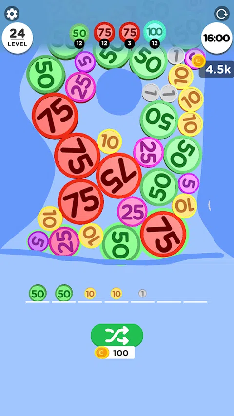 将字段中的硬币分类并合并为 3 组。达到目标时获得胜利