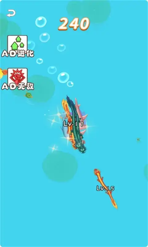 一款以合成作为主要玩法游戏,玩家可以操控小蝌蚪通过不断的去合成可以变成小青蛙、小乌龟、小鲤鱼、锦鲤、大鲨鱼等,变成神龙。