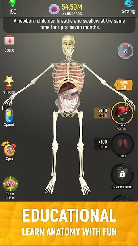 放置人类是一款以人体身体结构为题材的人体模拟养成类游戏。在游戏中,你将通过使用细胞来养成一个完整的身体结构,从人体的骨头架子、内脏、控制中心、外肌肉等,一点点养成,让你可以清晰地了解每一个器官的外形与结构,这样就可以帮助你理解人体的器官。真实的模型建造,让你可以知道各种人体健康小知识,感兴趣的玩家快来试试