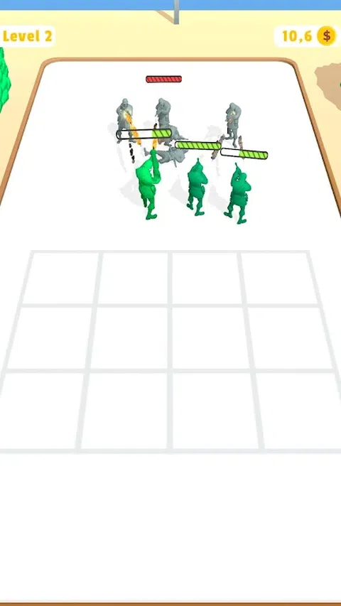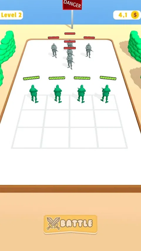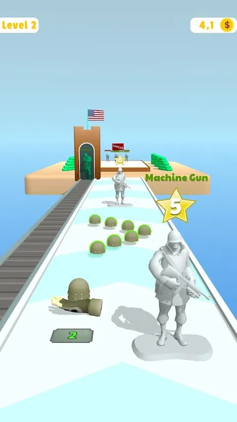 在这个游戏中,你收集你的头盔并组装你的士兵。游戏完成后,合并你的士兵并与敌人战斗