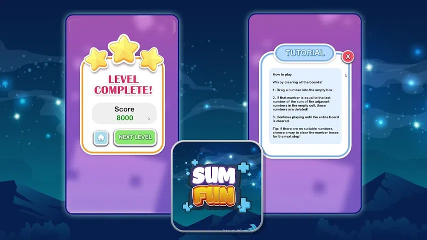 欢迎来到我们令人上瘾的 Sum Fun 2024 益智游戏!玩法如下: 目标: 您的目标是通过策略性地消除数字来清除所有棋盘。 清除所有棋盘即可获胜! 将数字拖入空白框中 如果该数字等于空单元格中相邻数字之和的最后一个数字,则这些数字将被删除! 继续游戏,直到整个棋盘被清除 提示:如果没有合适的数字,请选择一种方式清除数字框以进行下一步