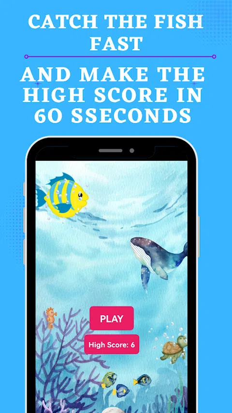 准备与 沉浸在这款迷人游戏的刺激之中,挑战您的反应能力,目标是在移动中捕捉难以捉摸的鱼。 怎么玩: 玩法很简单:通过快速点击捕捉尽可能多的鱼,在一分钟内争取最高分。每次点击都会钓到一条鱼,为您赢得积分。但要小心 - 鱼不断游动,所以你需要保持警惕! 特点: 引人入胜且令人上瘾的游戏机制。 测试您的速度并在滴答作响的时钟上集中注意力。 记录您的最高分,并挑战朋友以击败他们。 离线游戏,不共享任何数据,确保随时随地畅玩。 为什么点击鱼? 适合所有年龄段的愉快而简单的游戏。 无需互联网连接,随时随地提供无缝游戏。 令人兴奋的快节奏动作,让任何时刻都充满活力。 与朋友竞争,通过高分分享展示你的技能。立即免费下载,瞄准最高分