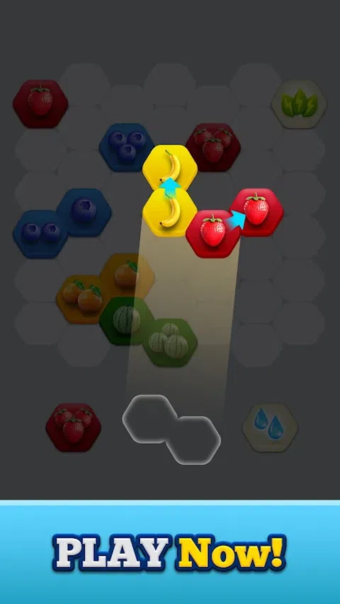 欢迎来到 Fruit Fold,在这里,战略合并在充满活力的六角网格上满足烧脑的挑战!沉浸在身临其境的益智冒险中,将巧妙的合并机制与令人兴奋的游戏玩法无缝结合。 准备好在 Fruit Fold: Merge Puzzles 中踏上激动人心的合并之旅,在充满刺激的 7x7 六角网格中导航!将 5 种基本水果(草莓、香蕉、橙子、西瓜和蓝莓)与阳光、水和肥料等 3 种奖励物品合并,以解锁强大的组合。通过合并相同的水果或将它们与匹配的奖励物品组合,观看每个物品通过 4 层进化。但请注意:太仓促的合并可能会让你在棋盘上的空间狭窄! 通过瞄准各种关卡目标(例如得分目标、水果目标或特定级别合并)来测试您的技能,同时策略性地管理您的移动和时间。您能迎接挑战并征服每个级别的独特目标以取得胜利吗? 立即踏上合并冒险