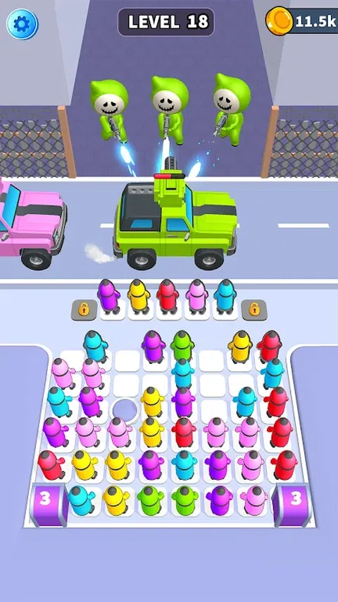 欢迎来到令人肾上腺素激增的“Bullet Jam 3D”世界,在这里,战略思维与爆炸性行动相结合,在惊心动魄的三消益智冒险中!你的敌人朝你走来,根据颜色分类所有子弹,并将它们重新装入枪中。用相似颜色的子弹射击每个敌人。 在这个高辛烷值的游戏中,玩家必须匹配三个相似颜色的子弹来解锁毁灭性的攻击并对敌军造成混乱。“Bullet Jam 3D”设置在充满敌人和障碍的动态 3D 环境中,挑战玩家快速思考和果断行动。每个关卡都有一个需要解决的新谜题,需要玩家战略性地计划自己的行动,以创建爆炸链并清除战场。 如何玩子弹分类游戏 * 您的目标是匹配相似颜色的子弹,清除棋盘并装入枪中。 * 点击一个躺着的子弹,将其移动到棋盘上。 * 匹配 3 个相同颜色的子弹并将其装入枪中。 * 如果您射击所有敌人,您将赢得比赛。 当玩家匹配三个或更多相同的子弹时,他们会发动强大的攻击,以壮观的方式消灭一波又一波的敌人。从寻的导弹到激光束和爆炸性炮弹,他们可以使用的武器库既多样又具有破坏性。 但要注意:时间至关重要!当敌军逼近时,玩家必须争分夺秒地进行匹配,避免来袭火力,并在为时已晚之前发动毁灭性攻击。成功解决每个难题后,玩家将获得奖励并解锁新的挑战,确保无尽的令人上瘾的游戏时间。 “Bullet Jam 3D”凭借其令人惊叹的 3D 图形、令人心跳加速的配乐和令人上瘾的游戏机制,为经典的三消游戏类型提供了独特的转折。您准备好测试您的反应能力,磨练您的智慧,并成为基于子弹的战斗的终极大师吗?是时候加入战斗,让子弹在“Bullet Jam 3D”中飞舞了