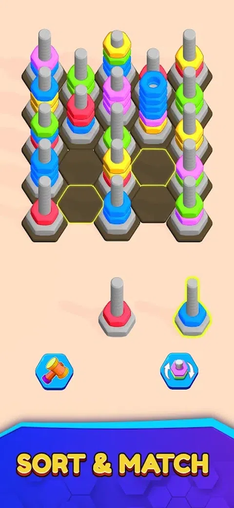 深入探索坚果分类和匹配,这是一款超休闲的移动益智游戏,旨在为玩家提供独特的战略性分类体验。 Nut Sort & Match 是一款身临其境、引人入胜的移动益智游戏,将战略性排序与视觉上吸引人的六边形网格格式相结合。旨在挑战和舒缓大脑,非常适合喜欢解决问题和放松的玩家。 怎么玩: 简单的拖放式坚果可按颜色对它们进行排序。匹配坚果并清除网格以获胜。每个级别都有不同的目标,并且更具挑战性。 主要特点: -直观的解谜机制。 -具有挑战性和简单性的谜题。 -多彩有趣。 -每个级别都有新的挑战。 -放松身心,有益于大脑。 -独特的六边形网格。 -充满活力的 3D 图形和舒缓的声音。 - 权力和奖金。 -适合所有人。 创新关卡: 《坚果分类与匹配》中的每个关卡都是一个新的谜题,其复杂性不断增加,配置也各不相同。随着您的进步,游戏会引入更大的网格和更多的坚果颜色,需要更多的战略思维。 为什么它很特别: Nut Sort & Match 的独特之处在于其六边形谜题,鼓励新的思维方式。这不仅仅是乐趣;这对你的头脑也有好处! Nut Sort & Match 非常适合所有年龄段的益智爱好者。它简单易学,但总是带来新的、令人兴奋的挑战。 “尝试坚果分类和匹配 - 简单、有趣且聪明的谜题