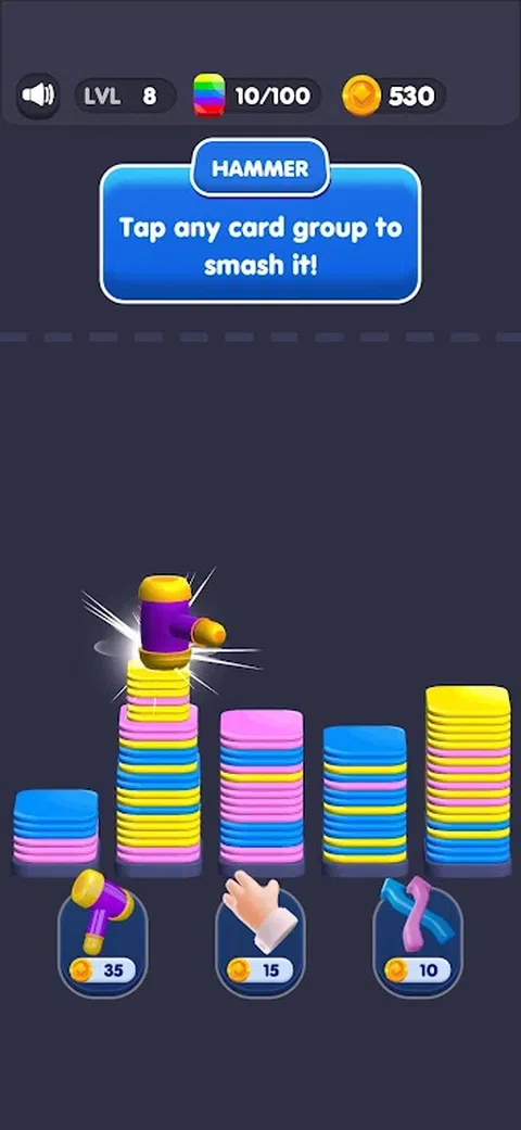 潜入充满活力的 Drop Sort 世界,这是一款刺激的色彩匹配益智游戏,挑战您的策略和观察技能!让自己沉浸在色彩生动的迷人旅程中。 在 Drop Sort 中,您的目标简单而令人上瘾:按颜色匹配卡片以清除面板并获得高分!但这里有一个转折点:你只能将牌放在空的插槽上。放置后,如果它们匹配,您的卡片会自动移动到彼此相邻的位置。当您的战略布局导致卡牌聚集成强大的组合时,见证魔法的展开