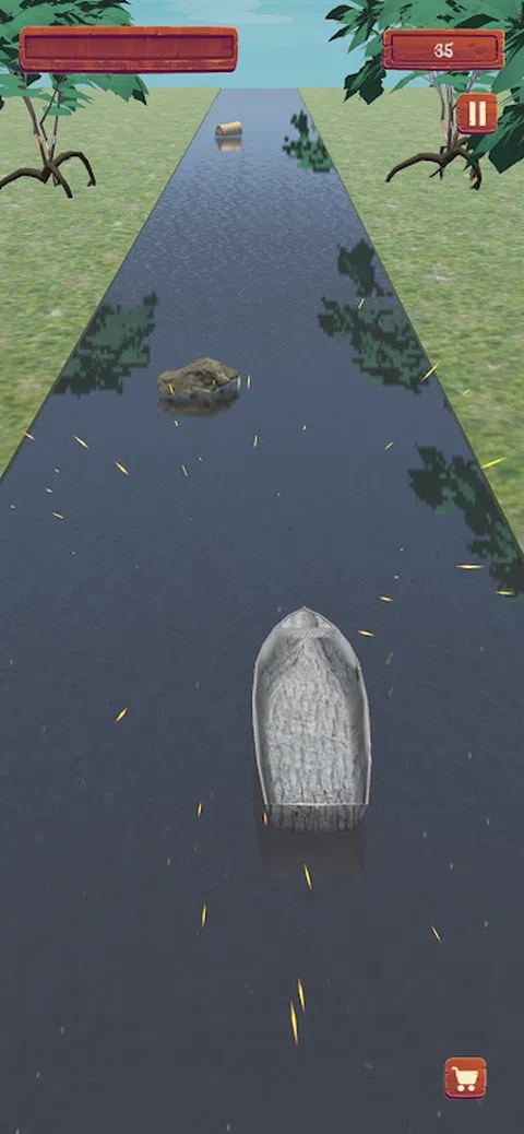 沿着河游,避开岩石,收集硬币和细节来升级你的船。是的,它从一开始看起来就不像一艘船,但这些波浪会给你一些升级。 当您获得更多金币时 - 使用助推器