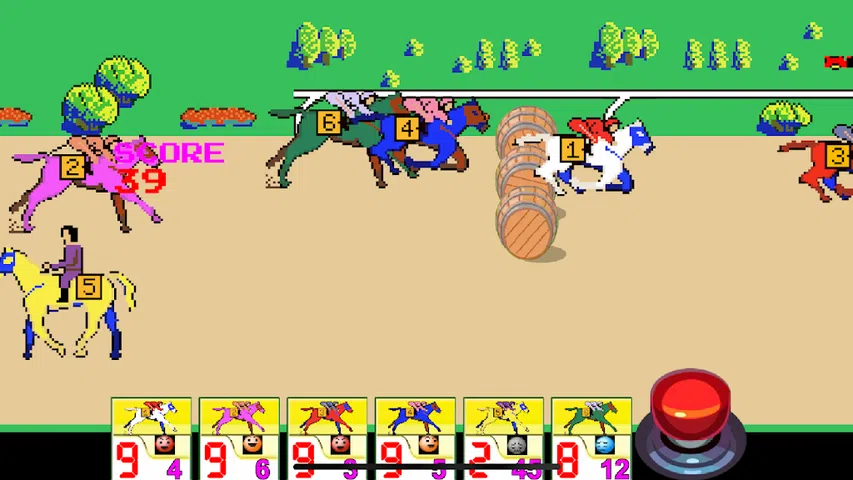 障碍赛是跨栏比赛的别称,是一种赛马比赛,其中马匹跳过称为跨栏(在本游戏中为桶)的障碍。 怎么玩 - 有六匹马的状况从坏到好。您应该选择一匹状态良好的马匹来开始比赛。当比赛结束时,如果你选择的马获胜,你可以增加你的分数。 如果您选择一匹状况不佳的马,您可以获得更多积分,因为它经常会导致骑师在跳过桶时摔倒