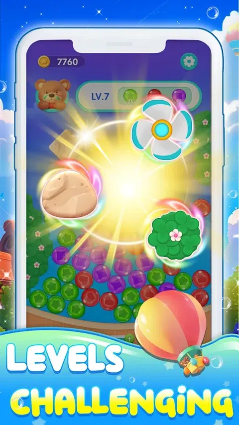 这款游戏非常容易上手!您只需要点击屏幕上相同颜色相连的小球,将它们一一消除。看着它们一个个消失,就像在上演一场精彩的魔术表演。另外,你可以一次消除一大堆球,即时的满足感简直令人上瘾。 除了基本的消除操作外,游戏还提供了各种强力的道具,帮助你更轻松的应对各种挑战。您可以使用炸弹道具引爆一定范围内的小球,也可以使用彩虹球道具匹配任意颜色的小球。这些道具不仅增加了游戏的趣味性,也让消除过程更具策略性。 在游戏中,你需要策略性地引爆整个场地,才能有效的清除棋盘上的小球。有时候,你需要先消除一些关键球,为后续的消除创造更好的条件。有时,你需要使用道具来打破僵局,找到突破口。这种策略性的玩法让游戏更具挑战性。 总体来说,这款游戏玩法非常简单,但是充满了乐趣和挑战。无论你是休闲玩家还是游戏高手,都可以在这里找到属于自己的乐趣。所以,尝试一下,看看你能在这个球的世界中创造出什么奇妙的东西