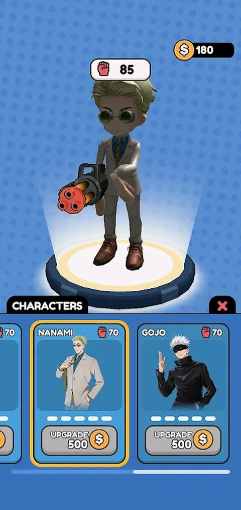 袭击了竞技场!扮演五条或柔术会战中你最喜欢的角色,清除所有敌人。 作为柔术魔法师,您可以使用各种强大的武器来击败敌人并进入下一阶段。玩游戏并升级你的武器,击败首领以解锁新世界。 特点: - 扮演你最喜欢的 JJK 角色,包括:Gojo、Itadori、Nobara、Megumi 和 Nanami。 - 升级你的武器,并随着你的进步解锁新的武器。 - 收集经验以解锁新的柔术会战角色并与他们一起玩! - 作为柔术巫师智取敌人,收集金币和生命包。 - 解锁最强魔法师:Gojo 立即与您最喜欢的动漫 JJK 角色一起玩,享受无尽的乐趣