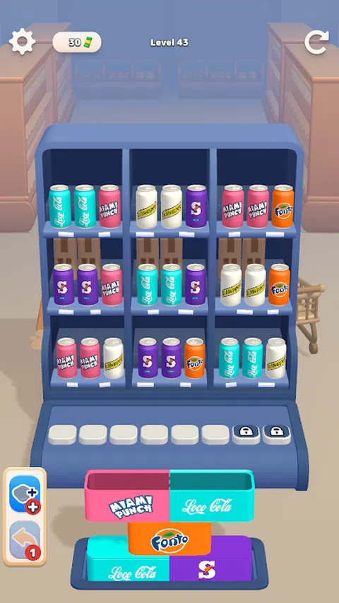 一个懒惰的员工将所有产品放在错误的货架上。重新组织和分类产品,以填满商场中的所有盒子! 扩张新商店,发展您的购物帝国! - 从货架上收集产品并将它们放入正确的盒子中。 - 在空间用完之前填满所有盒子
