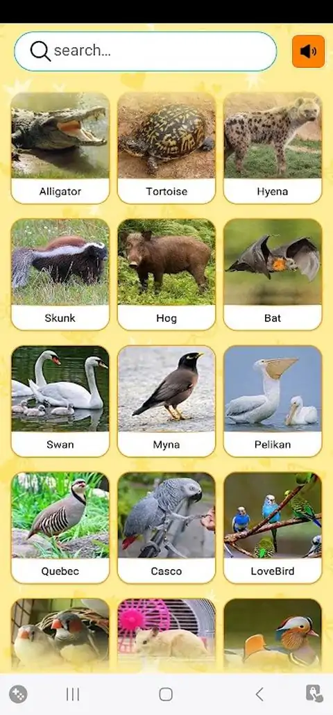 超过 100 种不同类型的动物和鸟类的真实声音,以及它们的真实图像,完全离线