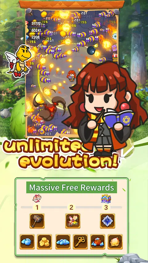 *魔法生存!* 在“Magic Survival”的奇幻世界中踏上史诗般的冒险!作为一个强大的巫师。探索神秘的领域,在危险的环境中生存,并揭开古老的秘密。以下是您对游戏的期待: 1. *塔防*:使用魔法生存,就像塔防一样。 2. *世界探索*:探索森林、沙漠、山脉等多样的地图和环境。沿途发现隐藏的宝藏和任务。 3. *魔法系统*:掌握各种魔法咒语,包括火球术、冰术、治疗魔法等。在战斗和谜题中战略性地使用它们。 4. *生存元素*:管理生命值、攻击和防御,同时搜寻生存所需的资源。 5. *任务和故事情节*:参与引人入胜的主线任务和支线任务,以解锁新地图、咒语并解开游戏丰富的叙事。 6. *战斗系统*:遭遇各种怪物和敌人。利用你的魔法能力和战术技能来保卫自己并取得胜利。 7. *成就和排行榜*:赢得成就,攀登排行榜,向世界展示你的魔法实力。 欢迎来到“魔法生存”的迷人世界