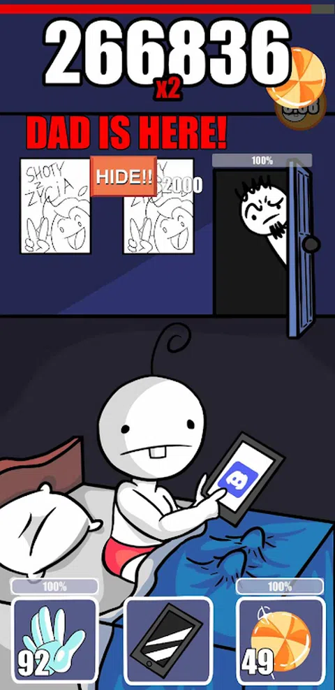 “Tablet Clicker”邀请玩家进入一个激动人心的世界,在那里,他们扮演一个淘气的玩家,试图在平板电脑上玩游戏,而不被他们警惕的父亲抓住。结合了基于点击的游戏玩法和潜行机制,玩家可以在房子的各个级别进行肾上腺素飙升的冒险,从卧室的舒适范围到客厅的热闹活动。 作为游戏玩家,您的主要目标是通过点击屏幕来积累积分,同时密切关注父亲的一举一动。挑战在于点击以赚取积分和每当爸爸靠近时迅速假装睡着之间的微妙平衡