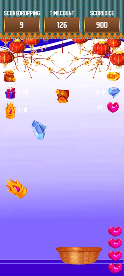 让自己沉浸在游戏挑战掉落的兴奋中。游戏是点击 play 获取一个随机数字,选择数字开始收集物品。 随机数越高,收集物品的分数也越高。选择随机数后,您将进入游戏。 您需要控制对象来收集物品。每个分数项目都显示在游戏中。当计时器用完时,您必须收集 >= 目标分数的物品,否则您将获胜 当计时器用完时,你的得分 < 目标得分,当你输掉所有的心游戏时,你也将输掉比赛。当物品到达地面时,您失去 1 颗心,总共 4 颗心。 您可以通过收集心脏物品来取回心脏。 你的挑战是收集物品达到目标分数而不丢失心。 特点: 随机数选择:单击“开始”以揭开一个随机数,这将为您的游戏奠定基础。 简单触摸:点击播放随机数字,然后控制对象收集物品。 动态游戏玩法:选择随机数后,无缝过渡到游戏界面。控制您的对象并熟练地导航环境以收集得分项目。 终极挑战:你的终极挑战是熟练地收集物品,达到目标分数,并在不失去全部心的情况下驾驭动态游戏。 获胜条件:你的任务很明确 - 在计时器归零之前收集物品以达到或超过目标分数。 沉浸在“Challenge Dropping”的挑战中,每一刻都充满了悬念、策略和克服障碍的快感。 您会接受挑战并征服游戏吗?冒险等待着您