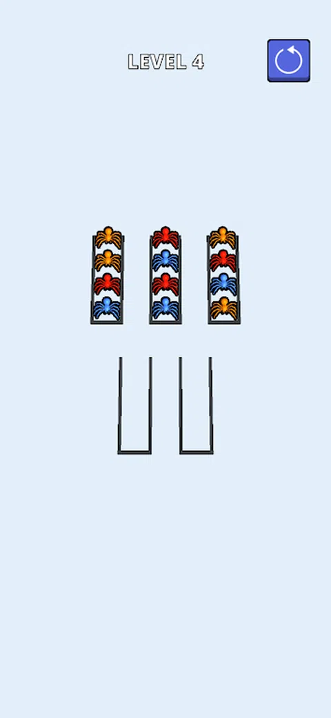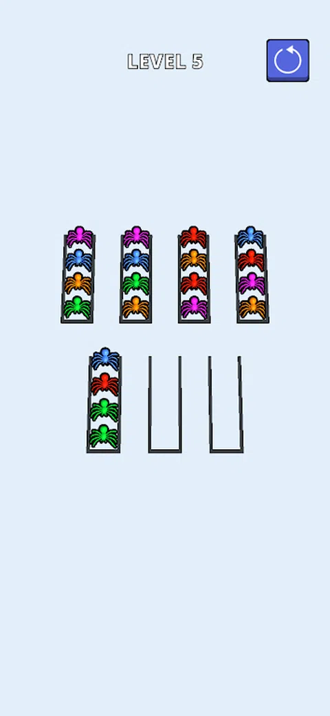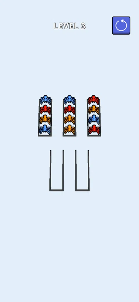 蜘蛛分类是一款根据颜色对蜘蛛进行分组的游戏。游戏的目标是将所有蜘蛛与所有其他相同颜色的蜘蛛分组