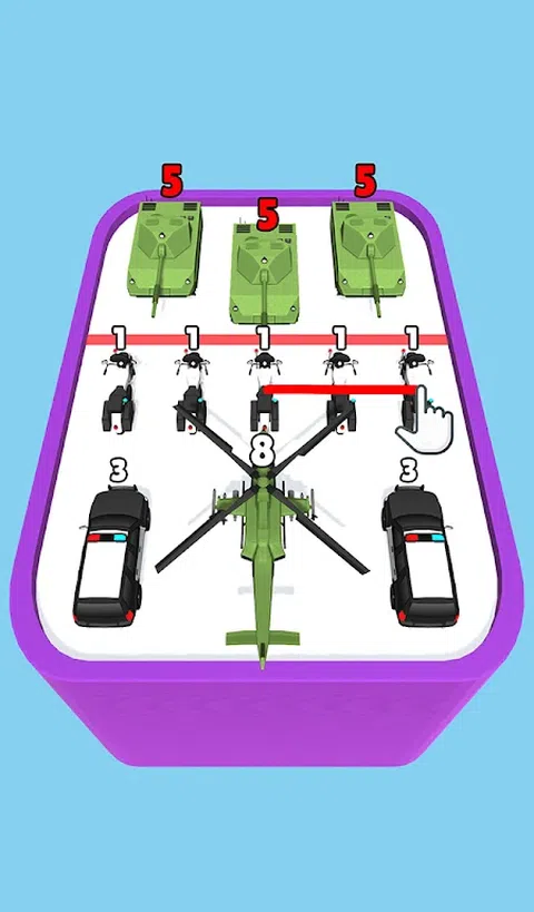 合并汽车大师是一款出色的策略游戏。您需要设置一个位置并选择合适的汽车来击败对手。 在召唤你的部队时要快速而聪明,并将它们放置在正确的位置,以将火力集中在最弱的敌人身上。车辆的等级越高,其攻击和防御能力越强。 每辆车都有不同的价格和属性,只有知道如何使用才能帮助您轻松获胜。快速反应和思考,使用战术赢得战斗,并进入下一个级别。 游戏特色: - 组合汽车,将它们合并成更高的车辆形式:摩托车、四轮车、卡车、救火车、坦克、直升机 - 令人上瘾的游戏和 3D 图形 - 简单易玩,征服不同关卡,赢取丰厚奖品 - 惊人的背景音乐 - 多个地图和障碍挑战。每个地图都有不同种类的敌人 立即下载,畅玩并享受。非常感谢
