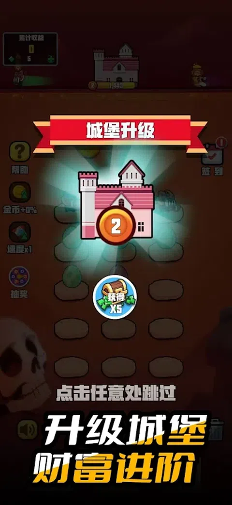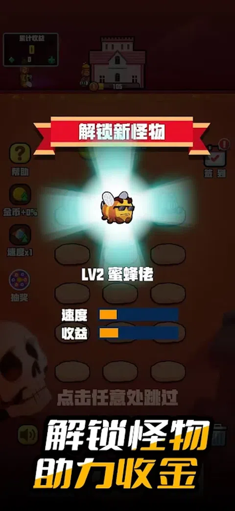 游戏里将两个相同等级的怪物拖拽到一起可以合成更高级的怪,拥有的怪物都为你卖力的赚取金币,怪物等级越高,获得的金币就越多。用你的金币来升级更高级的城堡,快来建造美丽的城堡吧