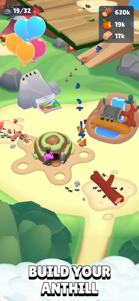 欢迎来到迷你蚂蚁帝国,在那里您可以带领蚁群从卑微的开始到征服世界。在这个战略性闲置游戏中控制资源收集,扩大领土并挑战敌人。凭借可爱的图形、战略深度和引人入胜的战斗,引导您的殖民地走向繁荣! 特点: - 资源管理:收集食物和材料以维持您的殖民地。分配蚂蚁觅食,收获资源或探索。 - 殖民地扩展:探索新区域并扩展以适应不断增长的人口,逐步占领领土。 - 战略选择:明智地分配蚂蚁以取得成功。定制您的殖民地的能力和优势,以克服挑战。 - 战斗:训练蚂蚁并参加战斗,使您的蚁群蓬勃发展。打击掠食性昆虫和其他威胁,以保护您的边界。 《迷你蚂蚁帝国》提供令人兴奋的游戏玩法、可爱的图形和战略深度,让您将蚂蚁殖民地建设成繁荣的帝国。在这个令人愉快的闲置游戏中,带领您的小而强大的蚂蚁取得胜利并征服领土