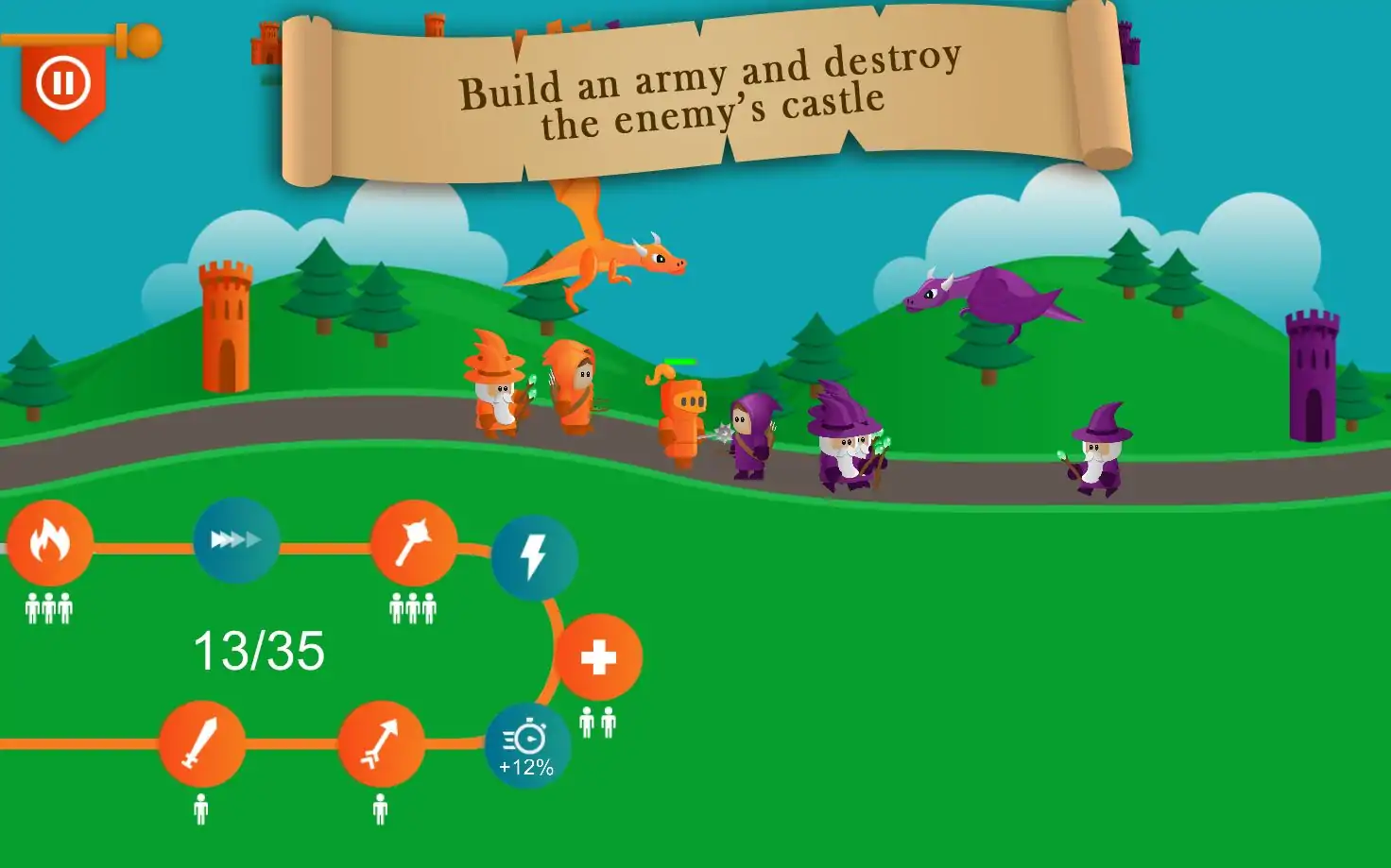 邪恶的军队已经开始进攻,和平而平民化,但我们必须反击。******************************** ********创建一支由剑士,弓箭手,法师,骑士和龙组成的军队,以消灭敌人。播放故事。轻松,正常和困难地玩快速游戏。在同一设备上与朋友一起玩。
