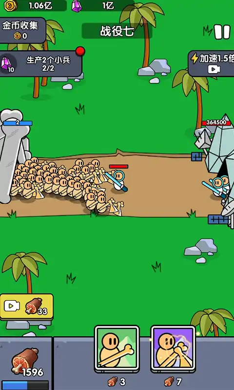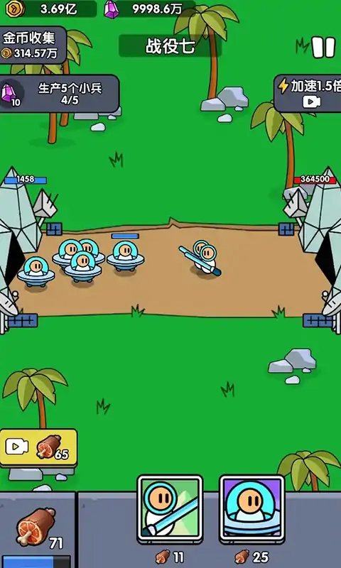 《战争超进化》是一款魔性休闲竞技游戏,简直让人欲罢不能!清新的画风与创意玩法相得益彰,让人在游戏中轻松释放压力。只需疯狂点击屏幕,扩充士兵保卫基地,便可轻松提升自己的时代。合理规划策略,提升各项属性,挑战多种关卡,每一关都充满惊喜与不同。不同的时代具有不同的士兵,甚至还有神秘外星人的加持。快来加入这场点兵大战,成为最强的指挥官吧!