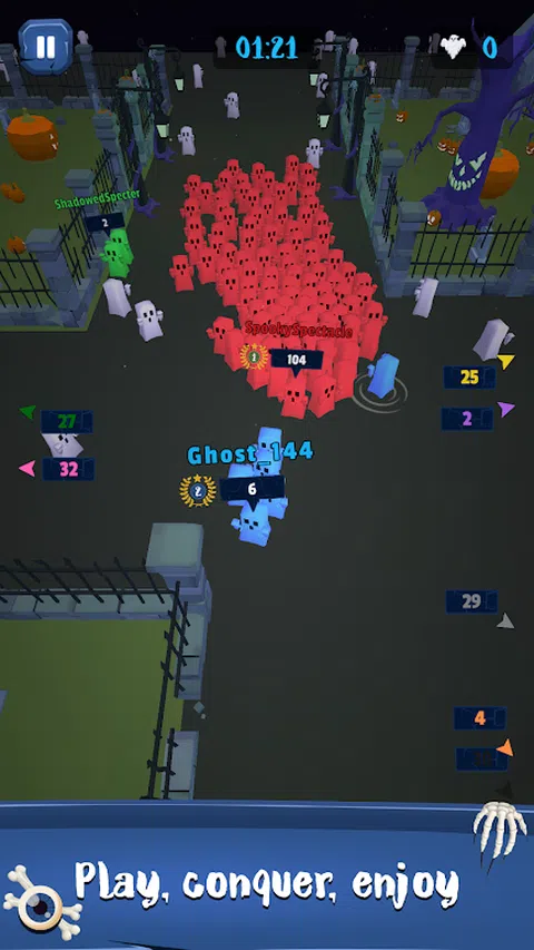 在这款快节奏的街机游戏中体验控制最大的幽灵人群的快感,您可以在其中合并、聚集和粉碎对手,以壮大您的军队,成为城市的不可阻挡的主人。凭借令人惊叹的 3D 环境和令人满意的游戏玩法,解锁新的皮肤和头像以定制您的体验。通过战略领导和防御,带领你的暴徒取得胜利,与敌人作战,成为最终的冠军。单人游戏或在多人离线模式中挑战朋友。您准备好将人群鬼城冠军的头衔收入囊中了吗? 在这款令人满意的街机游戏中,带领势不可挡的幽灵人群穿越真正的离线人工智能城市景观。粉碎对手,解锁皮肤,成为多人离线战斗中的终极冠军。发现新的环境并召集人们来主持节目