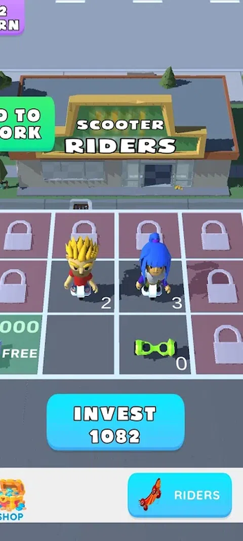 合并滑板车和合并骑手! 发展您的踏板车车手商店! 送货邮箱! 驾驶滑板车出租车! 偷别人的车! 打击坏人! 与其他车手比赛
