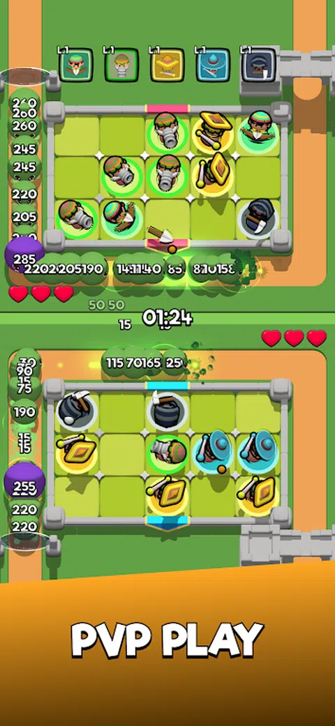 在充满活力的“史莱姆塔防”世界中,玩家被赋予了一项至关重要的任务,即保卫魔法花园免受调皮的史莱姆和强大的史莱姆首领的猛攻。这款引人入胜的塔防游戏将郁郁葱葱的花园的魅力与战略战斗的刺激挑战交织在一起。 游戏概述 在一个精美的动画世界中,玩家必须战略性地放置和管理各种独特的攻击者 - 每个都有自己的特殊能力和升级路径 - 以抵御一波波史莱姆。史莱姆,从讨厌的小斑点到强大的大首领,试图占领花园。玩家的目标是阻止他们到达花园中心的圣树。 攻击者类型和能力 游戏拥有多样化的攻击者名单,包括: 弓箭手花:这些花哨兵向即将到来的史莱姆射箭。它们可以合并以提高射速,还可以升级以造成各种状态效果,例如中毒或冻结。 炸弹浆果灌木丛:这种植物会投掷爆炸性浆果,造成区域伤害。合并它们会增加爆炸半径,而升级会增强伤害并增加惊人的效果。 荆棘藤蔓:这些攻击者用带刺的拥抱减缓史莱姆的速度。合并会导致更长的藤蔓覆盖更多的区域,而升级会增加减速效果并随着时间的推移增加伤害。 向日葵投石者:利用太阳能,他们射出集中的光束。合并它们可以提高攻击速度和射程,而升级会增加光束的强度,使其能够穿透多个史莱姆。 神秘蘑菇:释放孢子,迷惑和误导史莱姆。合并蘑菇会产生更大的孢子云,升级会增强混乱效果,使史莱姆相互攻击。 合并和升级机制 合并攻击者是“花园防御者:史莱姆入侵”中的独特转折。玩家可以将相同的攻击者拖放到彼此身上,创建一个更强大的单位。合并后的攻击者继承其前辈的增强能力,获得更高的攻击速度、伤害或特殊效果。 升级攻击者对于后续阶段至关重要。玩家通过击败史莱姆和首领来获得升级点数,这可用于增强攻击者的能力,使他们更有效地对抗更强大的史莱姆。 史莱姆类型和首领 史莱姆有各种形状和大小,每种都有独特的特征: 基本史莱姆:最常见的类型,容易击败,但可以大量压倒。 快速史莱姆:这些史莱姆比同类更快,需要快速反应才能停止。 装甲史莱姆:抵抗标准攻击,需要战略性地布置攻击者才能击败。 治疗史莱姆:这些可以治疗其他史莱姆,使它们成为优先目标。 史莱姆首领:具有特殊能力的大型史莱姆,例如产卵较小的史莱姆或发动远程攻击。击败他们需要战术规划和有效利用所有可用资源。 游戏模式 PVP 模式:与对手对抗 战役模式:通过关卡,每个关卡都有越来越大的难度和独特的布局。 无尽模式:在无尽的史莱姆浪潮中生存,获得高分并获得特殊奖励。 每日挑战:具有独特条件和奖励的特殊每日关卡