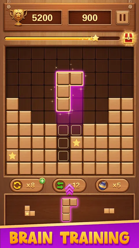 木块拼图游戏 - 木块拼图游戏,是一款以木块为主题的经典小型益智游戏。Block Puzzle Game 是一款挑战您在 10×10 正方形网格中组合不同形状的方块的游戏。Wood Block Puzzle Game 是一款经典游戏,没有大量的外星电子产品。玩 Wood Block Puzzle - 经典方块益智游戏服务,并在此方块益智游戏中找到所有组合模式。 如何玩木块拼图 - 经典拼图游戏: 拖动方块并将它们放置在由 10x10 正方形组成的网格上。 用方块填充行和列,直到消除它们 当面板上没有空间放置新方块时,游戏结束 无法管理区块 您可以摆脱的每一步以及每个条形或柱形都有奖励分数 获得一定数量的优秀分数,并成为木块拼图 - 经典方块益智游戏中的头号方块! Wood Block Puzzle - 经典方块益智游戏的特点: 完成游戏 享受真正的益智游戏:无需连接到 Wi-Fi 游戏公平,没有外星电子设备 对经典游戏玩法至关重要的更新:我们为您提供网格,您可以在其中放置当前不需要的方块 可以放置连击:连击四次或一系列以上的振动会发生 惊人的音乐效果 易于使用的规则,易于控制 升级的外观:几乎更自然的木材外观。 对各种材料格式的更新,缓慢而具有挑战性。 简单又诱人! 支持得分,支持朋友排名,加入我们,在木块拼图 - 经典块拼图游戏中发现更多利润! Wood Block Puzzle - 经典方块益智游戏还为您提供: Wood Block Puzzle - it is on Puzzle Games 是一款经典而简单的游戏,充满挑战。Block Puzzle 有自己的技能和方块放置策略,无论是第一步还是最后一步,因为每一步都将决定你是否会等待更高的结果。 立即下载木块拼图 - 益智游戏,享受美好时光