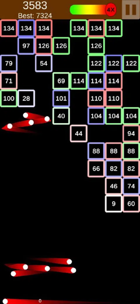 摧毁砖块,不要让它们到达底部 提示:按住屏幕可加快速度