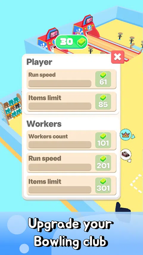 ? 在我们的保龄球宇宙游戏中开始您的第一个业务。发展保龄球俱乐部并购买所需的一切。为游客提供鞋子、气球甚至咖啡。 成为第一个举办锦标赛的保龄球俱乐部。参加保龄球锦标赛,在所有尝试中击倒一个好球