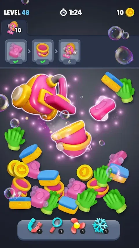您准备好在这款令人上瘾的益智匹配游戏中度过数小时的乐趣了吗?找到相同的物品并将它们全部合并! 介绍 Merge Master 3D - 匹配和合并对象,享受令人兴奋和有趣的游戏玩法,有数千个谜题等待解决。完成每个级别开始时设置的不同任务,掌握挑战并收集奖励。 通过玩有趣的合并游戏和解决难题,挑战您的反应能力并提高您的策略技能。您绝对会喜欢 Merge Master 3D! 不要错过这个惊人而轻松的游戏!开始你的冒险,赢取梦幻般的奖品,训练你的大脑,并在这款超棒的 3D 匹配游戏中冲向顶峰! 立即玩 Merge Master 3D,在滴答作响的时钟下测试您的合并技能!准备好迎接挑战了吗? 怎么玩: ★ 点击三个相同的项目将它们合并。 ★ 三个合并的项目将从面板上删除,并创建合并链中的下一个项目。 ★ 不断分类和合并对象,直到完成目标。 ★ 注意!每个级别都有一个计时器,因此您必须明智地计划自己的行动 - 快速移动并达到级别目标! ★ 找到特殊物品,帮助您分类物品并通过棘手的关卡。 ★ 使用风扇助推器来洗牌面板上的物品 有趣的功能: 简单易学的休闲游戏 设计精美的关卡 没有 WiFi?没问题!随时随地免费在线或离线玩! 有趣的大脑时间,以增加您的禅宗 强大的助推器,将帮助您进入下一个级别 您是否能够在计时器用完之前收集所有目标物品?立即下载并成为 Merge Master 3D 冠军