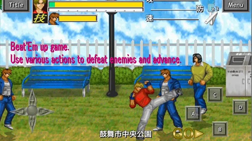 这个游戏是 Beat'Em up 游戏。 在通过各种行动击败敌人的同时推进各个阶段在阶段结束时有一个首领,击败它即可清除阶段。 有多个阶段,如果您清除所有阶段,您将获得结局。 您可以从两个角色中进行选择。每个人有三种战斗方式,因此总共可以选择六种战斗方式。 敌人也会攻击,因此请采取行动避免被击中,并使用物品等来躲避敌人的攻击
