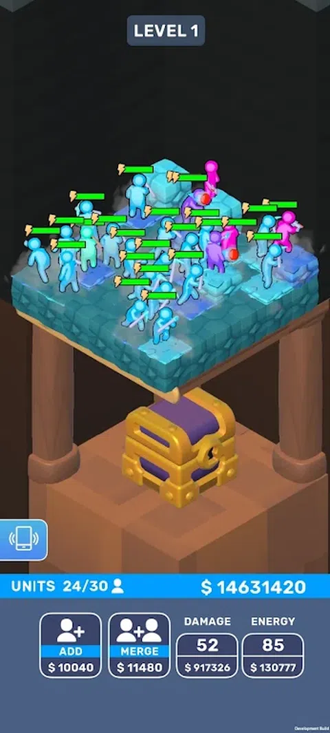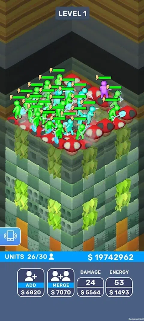 您能以多快的速度到达底部?雇佣新单位,合并它们以带来更多收入,并增加它们的能量和伤害