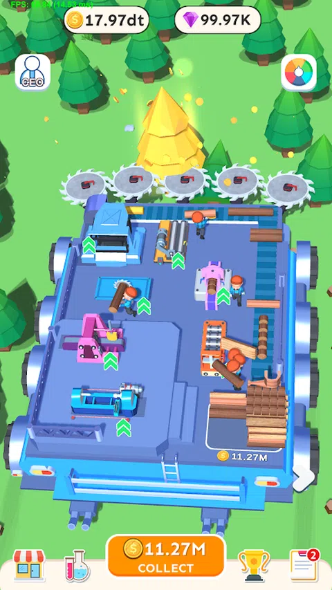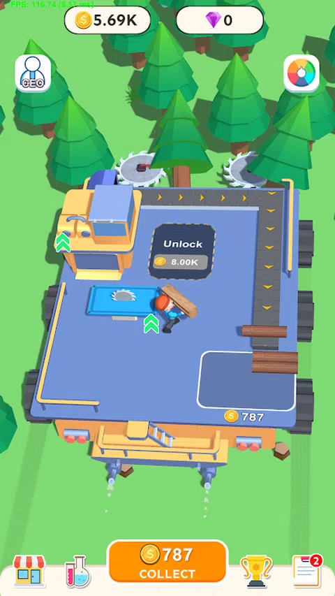 在 Rolling Woodcutter 中,扮演熟练的伐木工人,驾驶巨大的伐木平台穿过森林。你的目标是穿越茂密的树林,有策略地砍伐树木并将其加工成有价值的木制品。各种机器在您的平台上形成无缝生产线,看着原木滚动,为您不断发展的企业创造利润。升级你的装备,解锁新的区域,成为终极的滚木樵夫。踏上这段迷人的闲置之旅,拥抱森林的宁静节奏