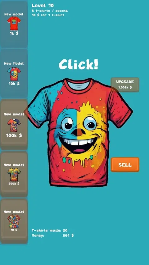 在游戏中,玩家扮演将设计应用到 T 恤上的大师。升级你的技能。发现 T 恤的新设计并将其出售