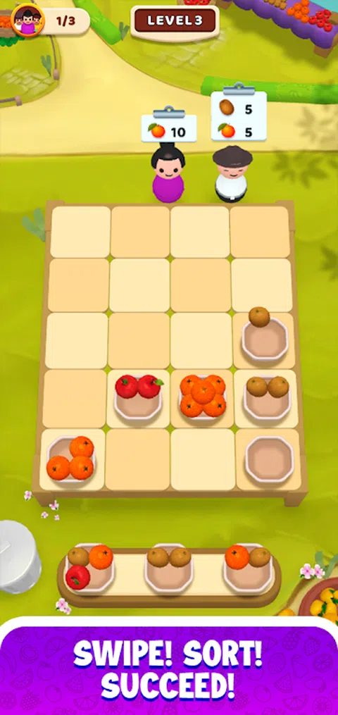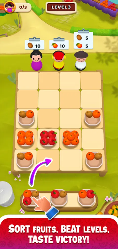 欢迎来到“水果分类”,快速的思维和快速的手指是成功的关键!在这个引人入胜的益智游戏中,您负责对各种水果进行分类以完成客户订单。每个级别都呈现不同的水果和客户需求组合,挑战您的战略性思考和迅速行动。对苹果、橙子、浆果等进行分类,让您的顾客满意,并通过越来越具有挑战性的阶段。非常适合喜欢时间管理和解谜的玩家,“水果分类”在每个回合都提供新鲜的转折。准备好分类、满足并成功