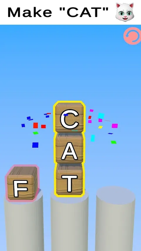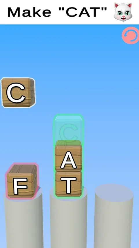 主要动作:点击方块 ・第一次点击:抬起所选字母块上方的块。 ・第二次点击:将方块移动到点击的目的地。 如果你能说出一个建议的单词,你就赢了;如果你说出了一个错误的单词,你就输了